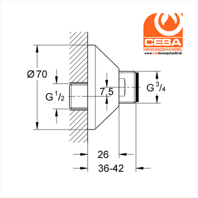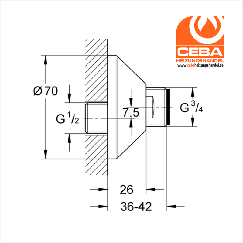 Grohe S-Anschluss Grohe 1/2" x 3/4" Verstellber.7.5mm m.Rosette verchr.