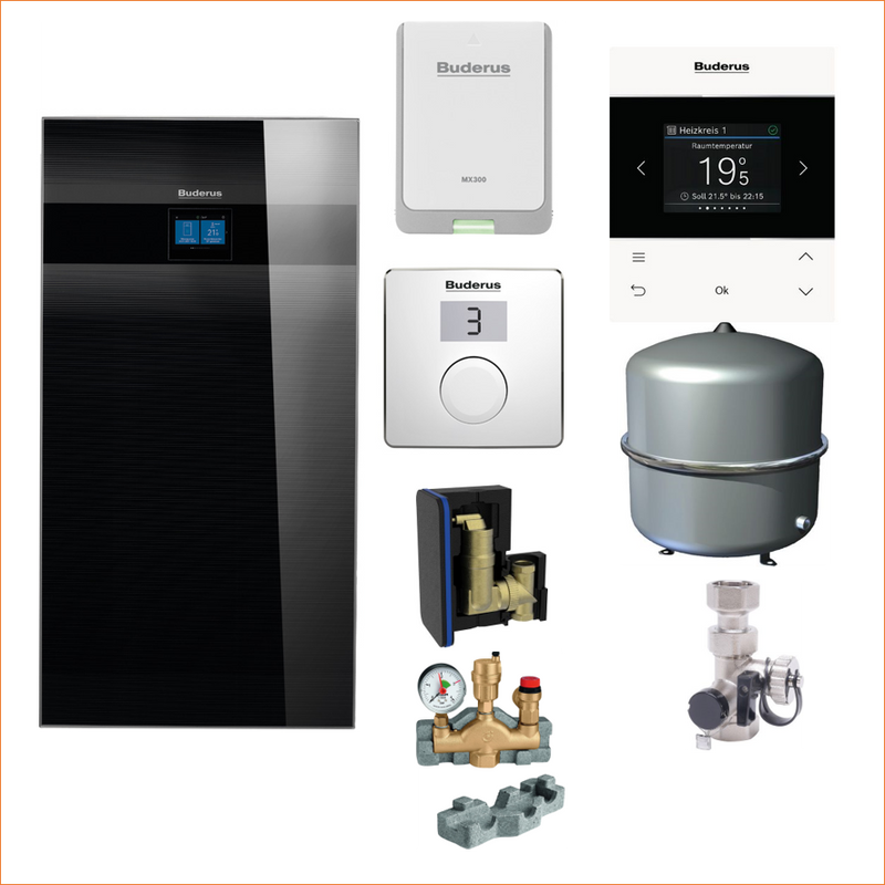 Lieferumfang der Buderus Logaplus WSW196i E3 Wärmepumpe: