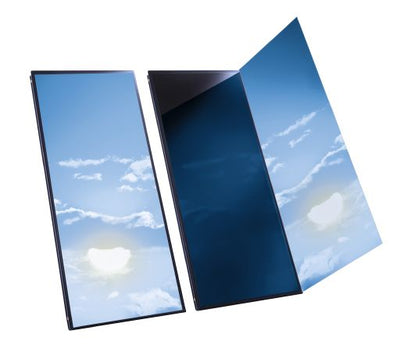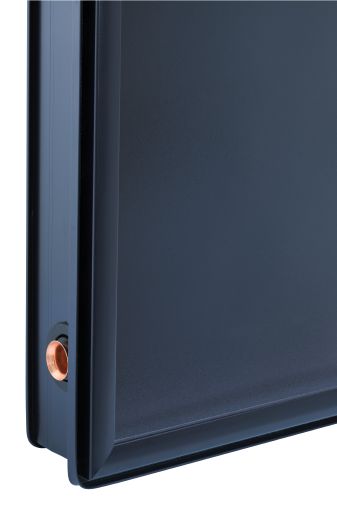 Flachkollektor (senkrecht) zur Erwärmung von Trinkwasser, Heizungs- und Schwimmbadwasser über einen Wärmetauscher sowie zur Erzeugung von Prozesswärme. Für Schrägdachmontage und zur freistehenden Montage. Konstruktionsmerkmale und Ausführung: Hochleistungskollektor senkrechte Bauform, bestehend aus einem Mäander-Absorber mit hochselektiver, schaltender Beschichtung. Gehäuse aus einem umlaufendgebogenem Aluminium-Rahmenprofil, seitliche und rückseitige Wärmedämmung aus Melamin-Harz-Schaumstoff. Abdeckung aus hochtransparentem und hagelfestem Solar-Sicherheitsglas. Integrierte Verrohrung für modularen Aufbau von Kollektorfeldern mit bis zu 12 Kollektoren.